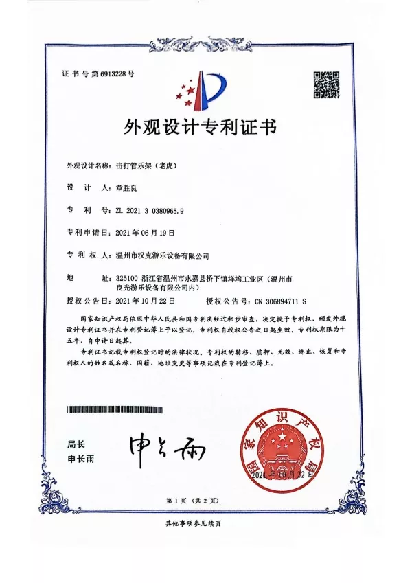 L'instrument de percussion en forme de tigre à lunettes a une hauteur de 105 * 32 * 175 et est fabriqué en alliage d'aluminium + plastique renforcé de fibres de verre + tuyaux galvanisés. Sur son côté gauche, il y a quelque chose de similaire à une main courante qui peut être fixée au mur ou utilisée pour aider les enfants fatigués à se reposer.